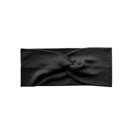 Opaska damska z twistowym wiązaniem z przodu wełna merino CZARNA