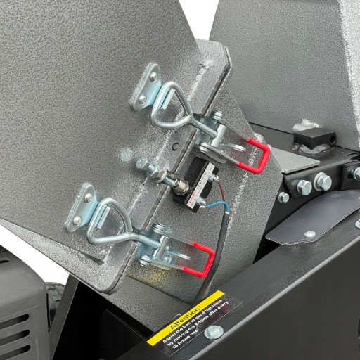 NOWY lej wrzutowy wyposażony został w zaciski szybkomocujące dzięki czemu w ławy i szybki sposób dostaniemy się do komory tnącej. Lej posiada także wyłącznik krańcowy uniemożliwiający uruchomienie maszyny przy czynnościach serwisowych.