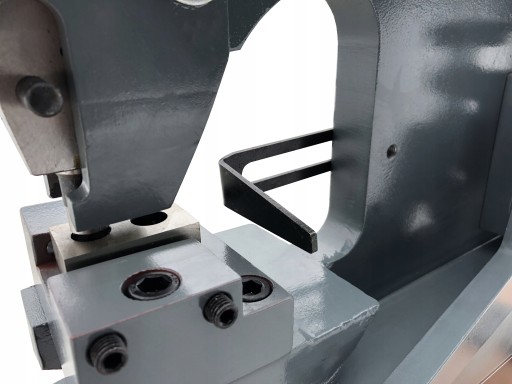 ✅ Dodatkowo maszyna posiada funkcję wykrawania otworów w blasze do 5 mm. Średnica wykrawanego otworu to 16 mm. Istnieje możliwość zamontowania innych matryc od 3 mm do 22 mm.