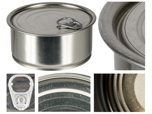 Szeroki rant gwarantuje bezpieczne i szczelne zamknięcie konserwy. Puszka pasuje do większości elektrycznych zamykarek do puszek (np. do Wek maszyny RealHunter).