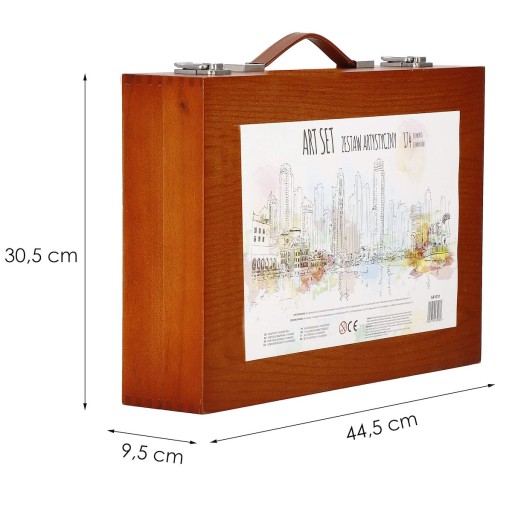 Zestaw artystyczny w całości jest ukryty w walizce, która została estetycznie wykonana. Maluch może śmiało samodzielnie ją zabierać ze sobą dosłownie wszędzie za pomocą uchwytu do przenoszenia. Do przedszkola, do dziadków, na wakacje a nawet i w plener.
