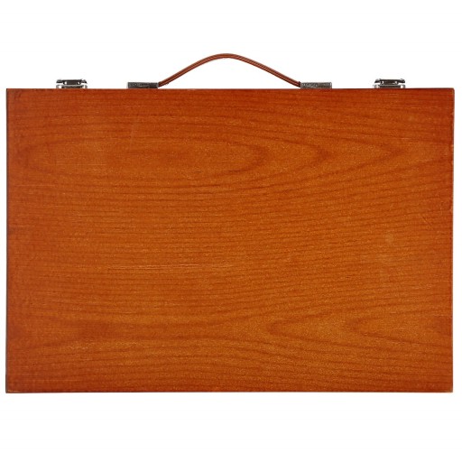 - drewniana dwupoziomowa walizka zamykana na zatrzaski