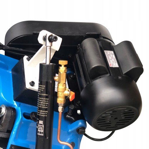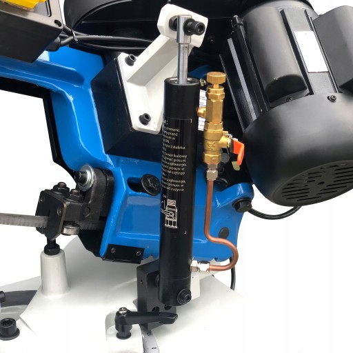 - Możliwość ustawienia ramienia w pionie i używanie maszyny jak pionowej przecinarki taśmowej.