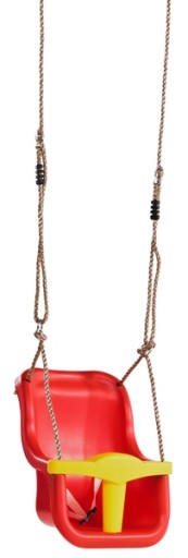 Huśtawka kubełkowa wraz z liną o regulowanej wysokości oraz szelkami uniemożliwiającymi wypadnieciu. Huśtawki doskonale nadają się do ogrodu jak i do zawieszenia w domu.