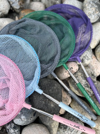 Dzieci w każdym wieku uwielbiają zabawę na świeżym powietrzu. Czas spędzony nad wodą, w ogrodzie, w parku to zawsze niezapomniane chwile i wspaniałe przygody. Niezbędnym akcesorium do harców na dworze jest teleskopowa siatka FOLLOW the duck, która doskonale sprawdzi się do połowu rybek, biegania za motylami czy wyławiania skarbów z basenu. Posiada regulowaną rączkę od 38 do 85 cm oraz siatkę o średnicy 20 cm. Drążek został wykonany ze stali nierdzewnej oraz tworzywa sztucznego, a siateczka z poliestru o małych oczkach, które mogą złapać również drobne przedmioty, np. muszelki. Zabawka doskonale sprawdzi się na plaży, na basenie, w ogrodzie, parku. Dzięki kompaktowemu rozmiarowi można ją zabrać ze sobą wszędzie!
