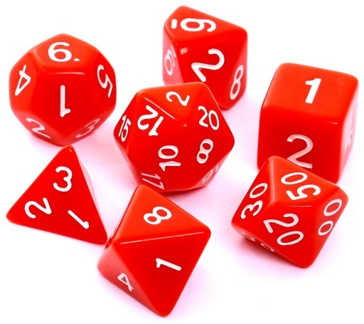 KOMPLET KOŚCI DO GRY RPG MATOWE CZERWONE REBEL
