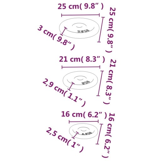 - Średnica talerzy 2,5 kg: 16 cm