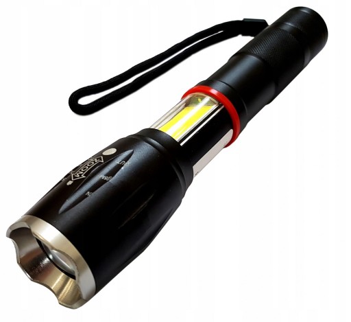 Latarka taktyczna z bocznym światłem COB i magnesem będzie szczególnie pomocna w garażu, warsztacie oraz w samochodzie w przypadku niespodziewanej nocnej awarii na drodze.