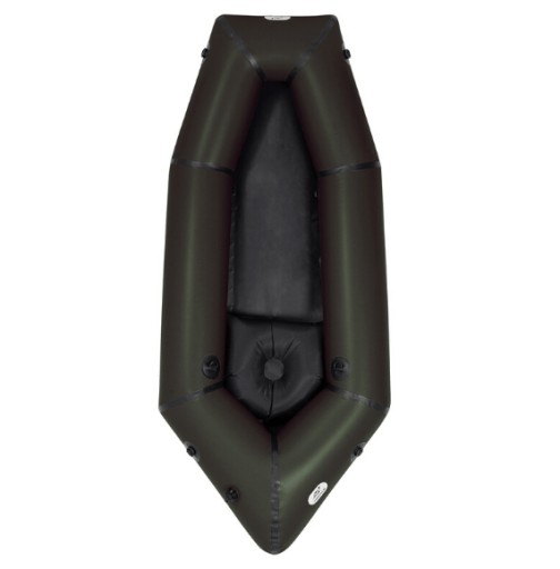 W tym ogłoszeniu kupujesz nowy packraft Pinpack Compact otwarty w kolorze ciemnozielonym.