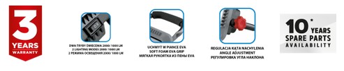 Zawiera diodę 20 W LED SMD i oferuje dwa tryby świecenia: 2000 i 1000 LM.