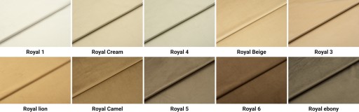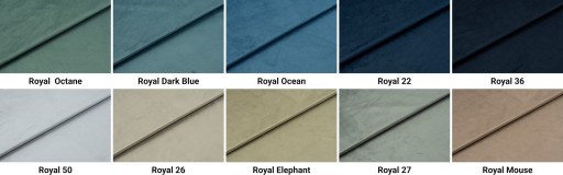 ➡️ Tkanina Royal Velvet to materiał tapicerski o przyjemnej, welurowej powierzchni. Posiada ona bardzo dobre właściwości i wysokie parametry ścieralności, które świadczą o jej wytrzymałości. Royal Velvet zalicza się do tkanin typu plusz, posiadając gęste i miłe w dotyku włosie. Same mikrowłoski zmieniają również subtelnie swoje położenie, gdy przejedzie się po nich dłonią, co dodaje materiałowi pewnego uroku jeżeli chodzi o sam wygląd. Z pewnością jest bardzo przyjemny i komfortowy w kontakcie, stąd z powodzeniem można z niego korzystać z myślą o wyposażeniu użytkowym. Tkanina jest wykonywana z najwyższej jakości poliestru, dzięki czemu się nie gniecie i tym samym nie wymaga ona prasowania. Struktura tej tkaniny sprawia, że ma ona zwiększony współczynnik na działanie światła i jest na nie na tyle odporna, że nie trzeba obawiać się o wygląd powierzchni wyeksponowanej na promienie słoneczne. Pomimo delikatności w dotyku, tkanina jest odporna na uciążliwe mechacenie się i trudno ją uszkodzić, o czym świadczy także wynik 100 000 w teście ścieralności Martindale'a - bez problemu nadaje się zatem do codziennego użytku domowego.