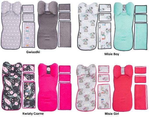 Dwustronna wkładka do wózka spacerowego wykonana z BAWEŁNY 100% w różnych wzorach i kolorach, z drugiej strony połączona z tkaniną MINKY Z BĄBELKAMI. W środku wypełniona mięciutkim ocieplaczem, można używać ją obustronnie.