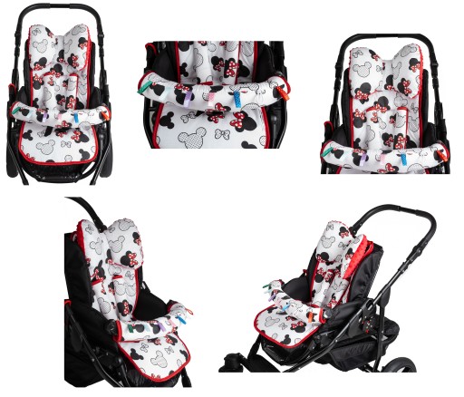 Wkładka posiada 6 otworów na pasy bezpieczeństwa, otwory na zamocowanie poduszki motylka oraz dwa otwory na 5-punktowe pasy bezpieczeństwa. Wkładki są uniwersalne testowane na wielu wózkach dziecięcych dostępnych na rynku.