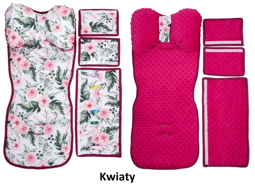 Dwustronna wkładka do wózka spacerowego wykonana z BAWEŁNY 100% w różnych wzorach i kolorach, z drugiej strony połączona z tkaniną MINKY Z BĄBELKAMI. W środku wypełniona mięciutkim ocieplaczem, można używać ją obustronnie.