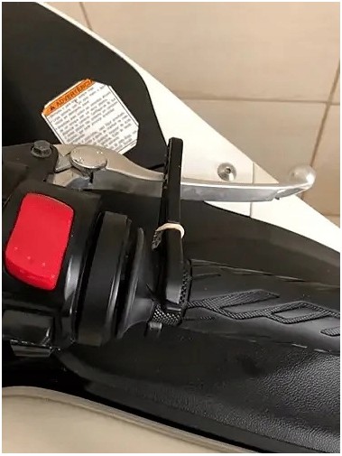 Zasada działania jest bardzo prosta, tempomat blokuje się o dźwignię hamulca i utrzymuje manetkę w jednej pozycji. Oczywiście w razie potrzeby można zmienić pozycję tempomatu.
