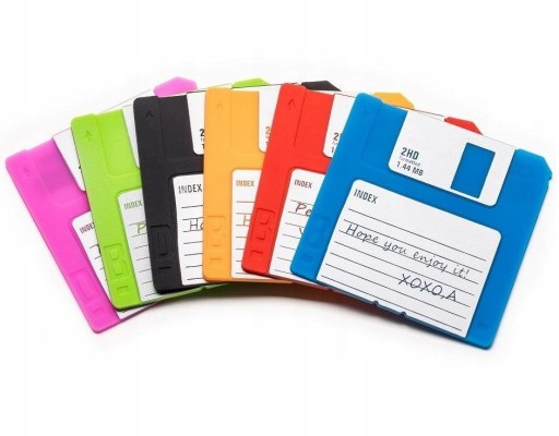 Komputerowa dyskietka 3,5" obchodzi w tym roku swoje 30-te urodziny! Z tej okazji wprowadziliśmy do sprzedaży retro gadżet dla każdego, kto pamięta stare dobre dyskietki 3,5", które w zamierzchłych czasach stosowane były w praktycznie wszystkich komputerach PC, Amiga, Apple lub Atari. Czasami mówiono na nie "miękki dysk" (Floppy Disk), co w przypadku naszych dyskietek-podstawek jest jak najbardziej trafnym stwierdzeniem. Podstawki wykonane są z trwałego silikonu spożywczego z grafiką nakładaną pod wysoką temperaturą, co powoduje, że do złudzenia przypominają prawdziwe dyskietki, ale są od nich wielokrotnie wytrzymalsze.
