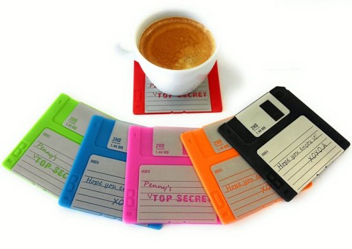 Komplet podstawek pod kubek - dyskietki.