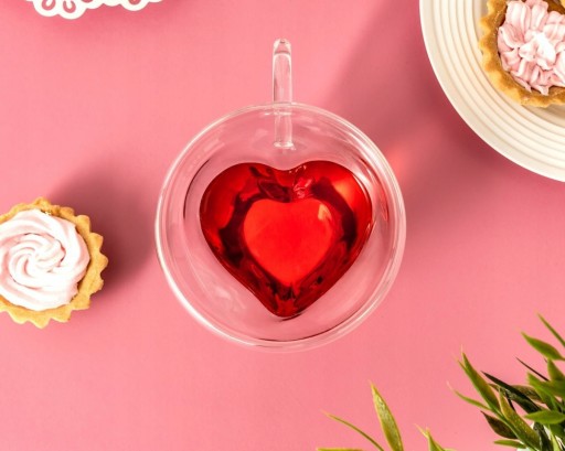 Wyjątkowo serdeczna ;) szklanka z wnętrzem w kształcie serca. Niecodzienny prezent od serca dla ukochanej, ukochanego czy dla innej osoby bliskiej naszemu sercu. Szklanka posiada podwójne ścianki dla większego komfortu jej użytkowania. Gorąca herbata czy kawa nie będzie parzyć w palce, a zimny napój na dłużej pozostanie przyjemnie schłodzony. Wewnętrzny kształt szklanki najlepiej widać po wlaniu do niej kolorowego napoju. Wprowadź trochę urozmaicenia do swojej kuchni z naszą wyjątkową szklanką, która na pewno będzie się wyróżniać wśród innych! :)