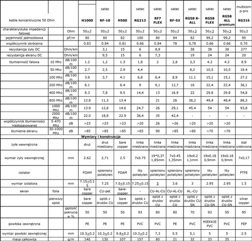 Przewód koncentryczny RF-5X producent SATEC POLSKA