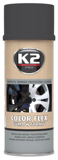 Rewolucyjna metoda tymczasowej zmiany koloru auta i innych elementów. Zapewnia efektowny wygląd i skuteczną ochronę. Zabezpiecza przed zarysowaniami, brudem, wilgocią,rozcieńczonymi kwasami, korozją, olejami, smarami. Nadaje się do nanoszenia na elementy lakierowane, felgi stalowe i aluminiowe, zderzaki, drewno, metal, szkło, tworzywa sztuczne i wiele innych. Pomalowane elementy można myć z użyciem gąbki oraz szamponu. Powłoka posiada doskonałą elastyczność, nie pęka, nie kruszy się. Wytrzymuje temperatury od -30⁰C do ponad 90⁰C. Naniesioną powłokę można łatwo usunąć. Po ręcznym usunięciu K2 Color Flex nie pozostawia żadnych śladów, a powierzchnia jest dokładnie w takim samym stanie jak w chwili nałożenia.
