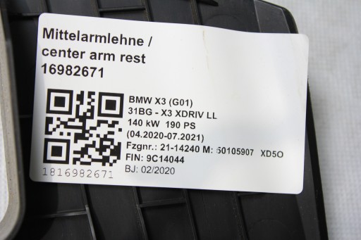ЦЕНТРАЛЬНЫЙ ТУННЕЛЬ ПОДЛОКОТНИК КАПУЧИНО BMW G01 X3