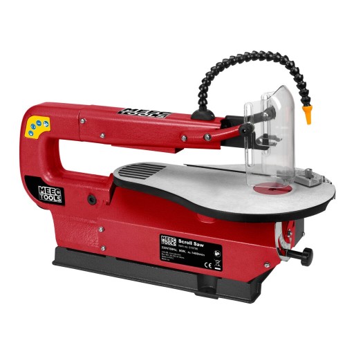 Wyrzynarka stołowa do wycinania kształtów w drewnie. Wyposażona w wydmuch wiórów, ogranicznik ukośny do cięcia ukośnego w zakresie 45–90° oraz moc 90 W.