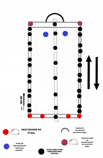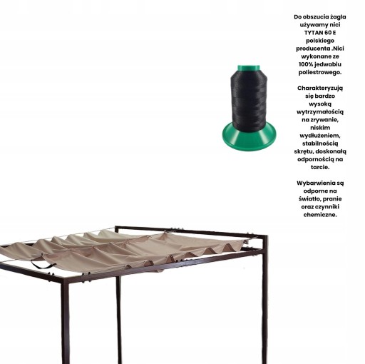Zalecamy zastosowanie linki nierdzewnej (nie mylić z linką ocynkowaną )bez powłoki PCV. Powłoką PCV hamuje oczka przy rozsuwaniu i zasuwaniu żagla .