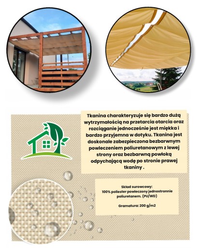 Skład surowcowy: 100% poliester powleczony jednostronnie poliuretanem. (PU/WD)