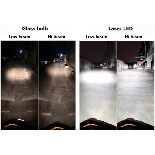 Najnowsza technologia Laser LED. Światło jest skupione na jezdni i brak ciemnych plam. Droga jest równomiernie i mocno oświetlona dzięki specjalnej soczewce. Nie oślepia kierowców z naprzeciwka mimo dużej mocy światła.