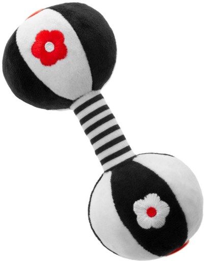 Miękka kontrastowa zabawka w kształcie hantli z pewnością zaciekawią Twojego maluszka.