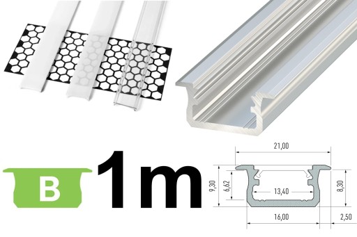 PROFIL ALUMINIOWY WPUSZCZANY DO TAŚM LED 1M TYP B z KLOSZEM
