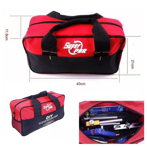 - Torba narzędziowa pomieści wszystkie elementy zestawu bez drutów.