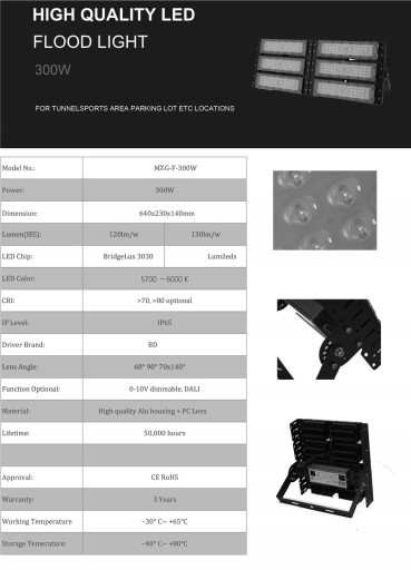 Светодиодный спортивный прожектор 300 Вт для фасада стадиона