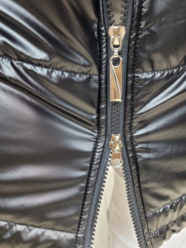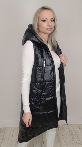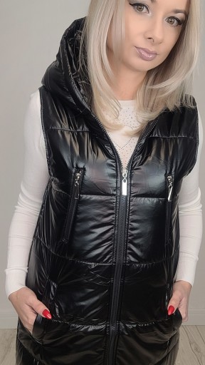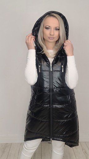 Kamizelka bezrękawnik damski pikowany z kapturem. Kamizelka i kieszenie zapinane na zamek błyskawiczny. Obszerny kaptur ochroni przed wiatrem. Kamizelka ma dwustronny zamek, wodoodporna tkanina z której jest uszyta zapewni komfort noszenia nawet podczas niepewnej pogody.
