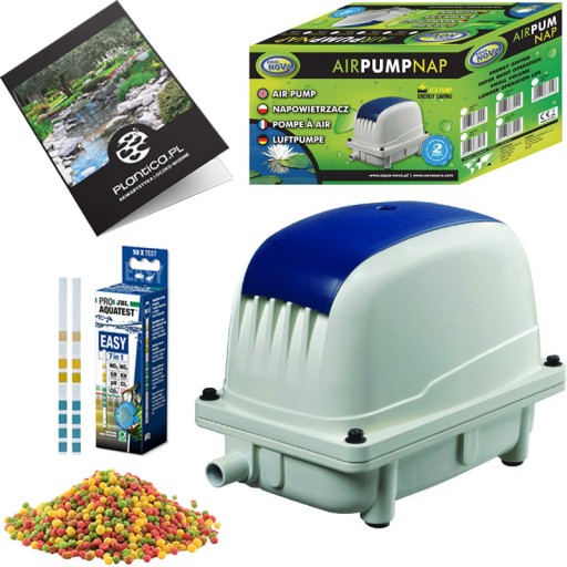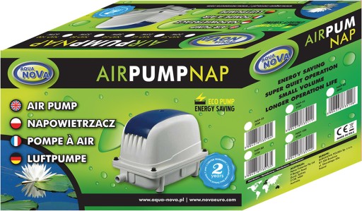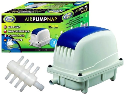 NAP AQUA NOVA to membranowa pompa powietrza o wysokiej wydajności. Wyposażona w najnowszej generacji wielopoziomowy system tłumiący , gwarantujący cichą pracę. Szczelna, aluminiowa pokrywa gwarantuje szybkie odprowadzanie ciepła i zabezpiecza pompę przed pracą w niekorzystnych warunkach atmosferycznych. Gumowe nóżki pochłaniające wibracje, zapewniają wysoki komfort i idealne dostosowanie do naszych potrzeb Spełnia wszystkie aktualnie obowiązujące normy bezpieczeństwa. Może pracować na zewnątrz z zachowaniem podstawowych zasad bezpieczeństwa. Powinien być umieszczony w suchym miejscu osłoniętym przed deszczem.Dzięki temu pompa może pracować zarówno wewnątrz pomieszczeń jak i na zewnątrz. Duża wydajność i ciśnienie pozwala pompować powietrze do dużych oczek wodnych i stawów na spore głębokości. Przy produkcji jak i w czasie pracy nie jest wykorzystywane smarowanie olejowe, dzięki czemu tłoczone powietrze jest bardzo czyste i bezwonne. Wszystkie te cechy sprawiają, że pompy mogą pracować ”non-stop”, bez wahań wydajności. Pompa NAP AQUA NOVA najwyższa jakość materiałów w bardzo estetycznej obudowie, o wydajności 2700l/h i zużycie prądu tylko 25W. Wszystkie pompy wyposażone są w rozdzielacz powietrza. W komplecie znajduje się rozdzielacz na 8 wyjść.