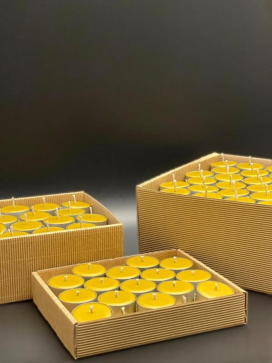 Całość zapakowana jest w estetyczne pudełko które można dać od razu na oryginalny prezent. Tealighty są dostępne w pudełkach drewniancyh jak i tekturowych