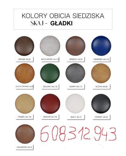 Mam do wyboru 36 kolorów oraz 3 rodzaje materiału do produkcji siedziska takich jak :skaj gniot, skaj gładki i skaj eko-skóra. Przy zamówieniu proszę o wpisanie kolor symbol i numer z tabeli kolorów.