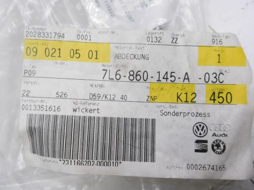ZAŚLEPKA RELINGU LEWEGO VW TOUAREG 07- 7L6860145A