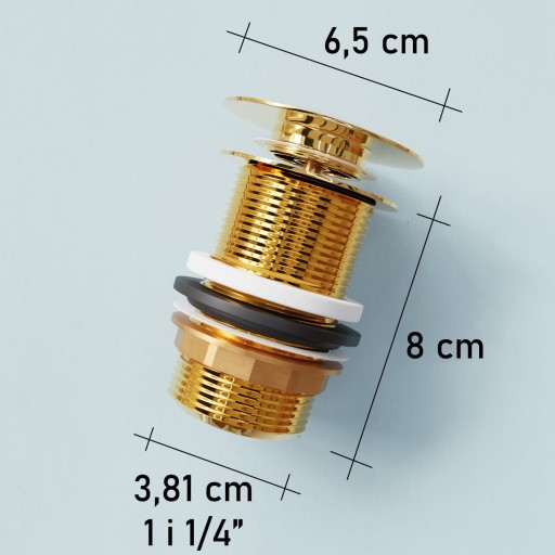 Syfon umywalkowy teleskopowy mosiężny korek klik klak bez przelewu złoty.