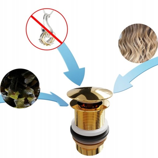 Ten łatwy w użyciu klik klak z łatwością wyłapuje włosy lub inne zanieczyszczenia podczas czyszczenia zlewu. A niski profil ułatwia wyłapywanie naszyjników, pierścionków lub innych przedmiotów przypadkowo upuszczonych do umywalki. Wymień swój stary korek już dziś na nasz prosty w obsłudze i montażu korek odpływowy typu „klik-klak”!