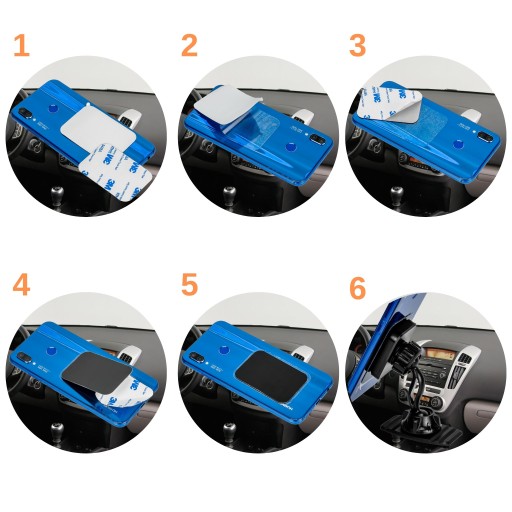 Blaszka metalowa stanowi element ,który przyklejamy do telefonu - magnesy uchwytu przywierają do blaszki trzymając mocno telefon.