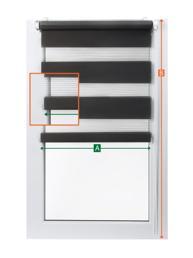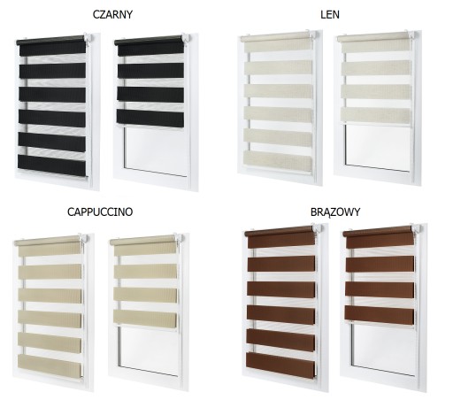 Wysokiej jakości tkanina dzień i noc wykonana jest z naprzemiennych pasów przepuszczających światło i zaciemniających.