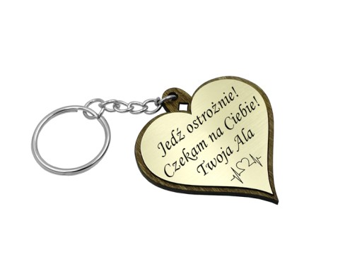 Drewniany brelok do kluczy. Breloczek wykonany ze sklejki, do której zostaje przyklejona tabliczka z laminatu grawerskiego z GRAWEREM. Na produkcie umieścimy dowolny grawer.