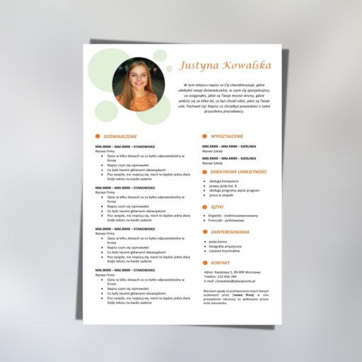 Oferowany na tym ogłoszeniu wzór szablonu CV to wzór - 2/22/CV w wersji PL.