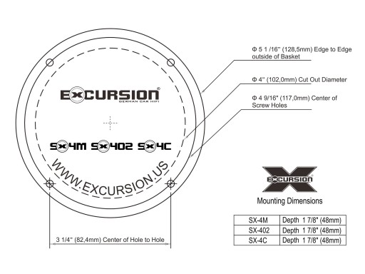Samochodowy 2-drożny zestaw głośników odseparowanych z mid-wooferami o średnicy 100 mm z serii Street eXcursion (SX) niemieckiej marki Excursion. Zestaw prezentuje bardzo dojrzały i dynamiczny charakter brzmienia, jaki często oferują znacznie droższe produkty. Jest to możliwe dzięki temu, że w głośnikach z serii SX zastosowano szereg sprawdzonych naturalnych materiałów, technologii i rozwiązań, które od wielu lat są uznawane za jedne z najlepszych dla tego rodzaju produktów oferowanych przez renomowanych producentów z branży Home i Car Audio, często również w modelach pozycjonowanych w dużo wyższej klasie. Należą do nich między innymi sztywne i lekkie membrany mid-wooferów ADC z 2-warstwowego prasowanego papieru zaimpregnowanego przed wilgocią specjalną substancją antyrezonansową poprawiająca brzmienie oraz wysokiej jakości głośniki wysokotonowe z kopułkami 20 mm wykonanymi z naturalnego jedwabiu, które w tym przedziale cenowym są praktycznie bez konkurencji. Nie od dziś wiadomo, że właśnie papierowe membrany mid-wooferów zapewniają najbardziej dynamiczne, wierne oraz naturalne brzmienie niskich i średnich zakresów pasma akustycznego, a jedwabne kopułki tweeterów dostarczają detalicznych wysokich tonów o przyjemnej barwie. Za prawidłowy napęd membran mid-wooferów odpowiadają wydajne układy magnetyczne posiadające centralne otwory ograniczające kompresję i wentylujące cewki drgające, które zostały nawinięte miedzianym drutem na lekkich aluminiowych karkasach. Na uwagę zasługują także stabilne stalowe kosze z symetrycznie rozłożonymi otworami pod dolnym zawieszeniem, których zadaniem jest dodatkowe wspomaganie systemu chłodzenia. Dzięki temu głośniki są bardziej odporne na obciążenia wyższą mocą, co przekłada się na ich długą i bezawaryjną eksploatację. W zestawie znajdują się także 4 oddzielne dla każdego głośnika zwrotnice pasywne Inline Plug&Play o bardzo małych wymiarach ułatwiających montaż. Zostały wyposażone w wysokiej jakości podzespoły oraz zapewniają dużą elastyczność montażu i szeroki zakres konfiguracji połączeń. Te małe pasywne filtry są idealnym rozwiązaniem pozbawionym całego niepotrzebnego balastu akcesoriów i gadżetów, który tylko nadmiernie \"obciążałby\" dźwięk i portfel. W efekcie końcowym otrzymujemy bardzo dobrze brzmiący zestaw głośnikowy, którego sekcja średnio-wysokotonowa obfituje bogactwem detali i szczegółów tworzących czysty i wyraźnie odczuwalny przestrzenny obraz dźwiękowy osadzony na solidnym fundamencie basowym budowanym przez głośniki średnio-niskotonowe (mid-woofery). Takich materiałów, rozwiązań, jakości wykonania i brzmienia nie oferuje większość konkurencyjnych głośników o porównywalnym rozmiarze i w podobnej cenie. Sprawia to, że głośniki Excursion z serii SX są niemal bezkonkurencyjne w swojej klasie i od wielu lat należą do grupy najczęściej sprzedawanych głośników przez sprzedawców detalicznych w Europie. Doskonale sprawdzają się w popularnych amatorskich systemach car Hi-Fi, jako znakomite wejście w świat niedrogiego, ale już markowego car audio, a także jako bardzo dobrze brzmiące zamienniki samochodowych głośników fabrycznych (OEM) w przystępnej cenie.