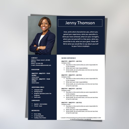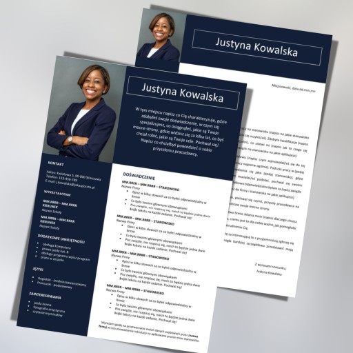 Edytowalne szablony CV i listu motywacyjnego, w których możesz w łatwy sposób zmienić według własnych potrzeb: treść, kolory, zdjęcie, wielkość i rodzaj czcionki.