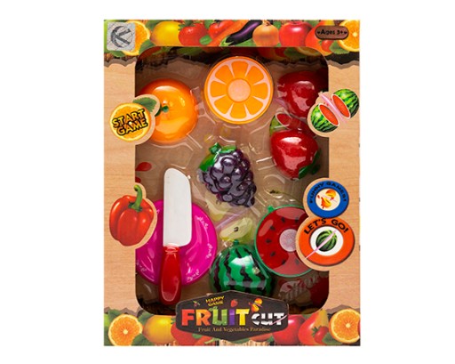Owoce można przekroić załączonym do zestawu nożykiem plastikowym, dzięki rzepu znajdującego się wewnątrz owocu można je łatwo połączyć