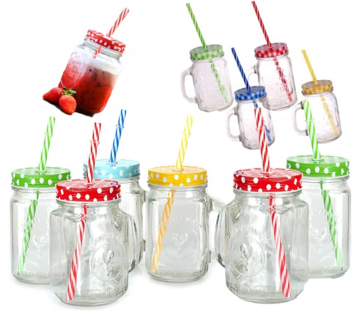 Kubek mix SZKLANY SŁOIK ZE SŁOMKĄ 450ML ZESTAW 12 SZTUK
