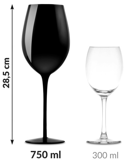 - Kieliszek pozwala cieszyć się winem bez konieczności jego dolewania.