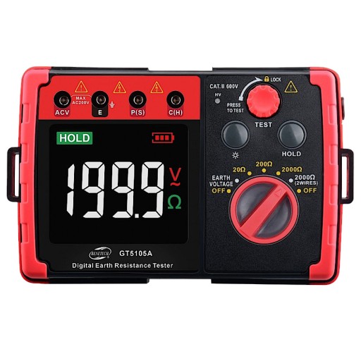 Miernik Benetech GT5105A może wykonywać pomiary uziemień precyzyjną metodą 3-przewodową lub proste 2-przewodowe pomiary rezystancji uziemienia dla systemów energetycznych i elektrycznych, urządzeń ochrony odgromowej i systemu uziemienia wszystkich urządzeń elektrycznych.